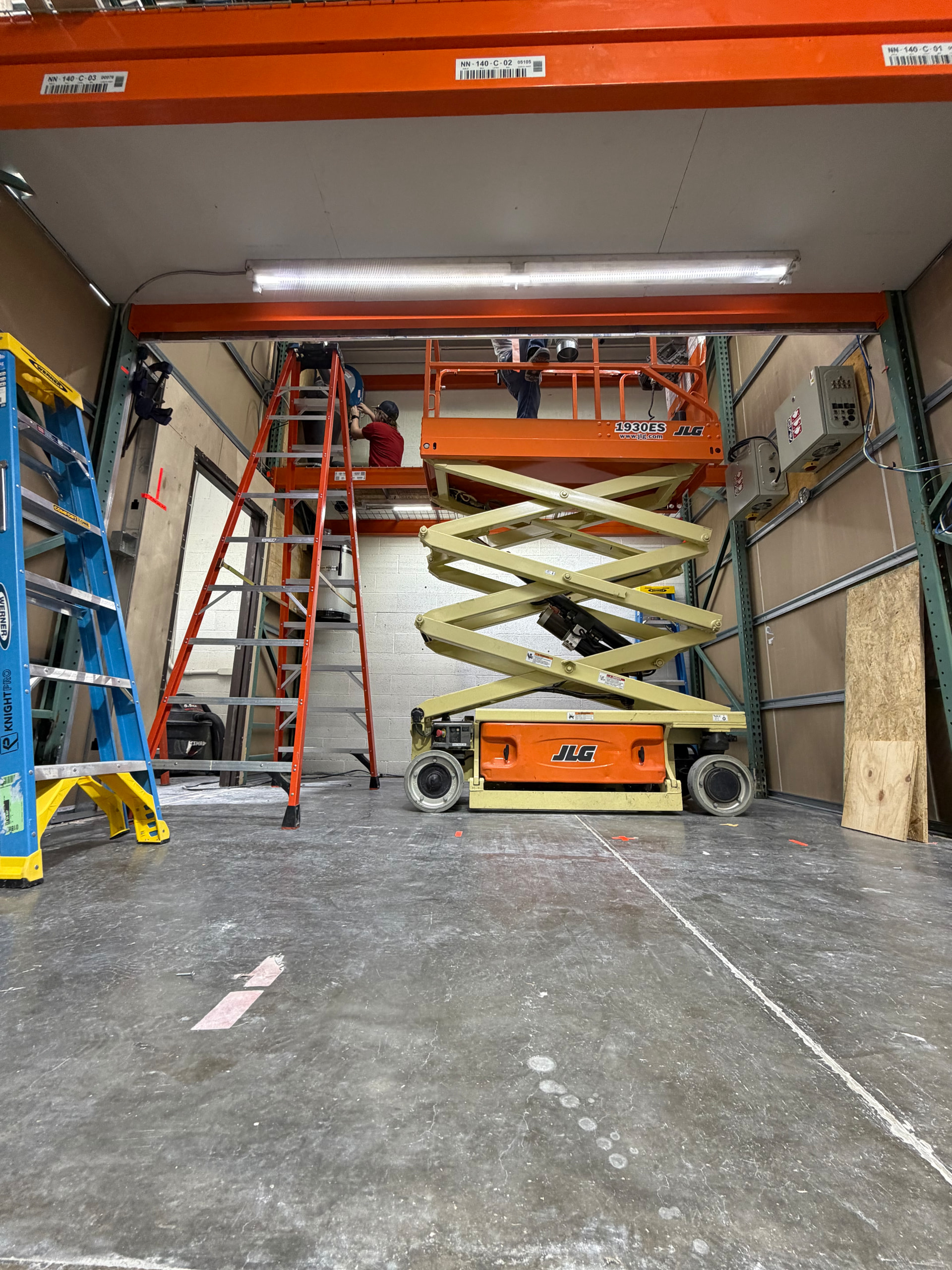 Curious if you experienced guys foresee any issues with spindle and motor control boxes mounted on wall just above head height turned 90 degrees to the right in below photo. Main reason for this is to clear the 2’ walking path and still reach disconnect switches from the ground, and help wire connections reach table. Long track side of cnc table will orient parallel 2’ off right wall. See attached photo. Tight on space and want isolate vibrations from table so not mounting on leg frame of table. Serviceable from step ladder as doors drop downward like a mini shelf.