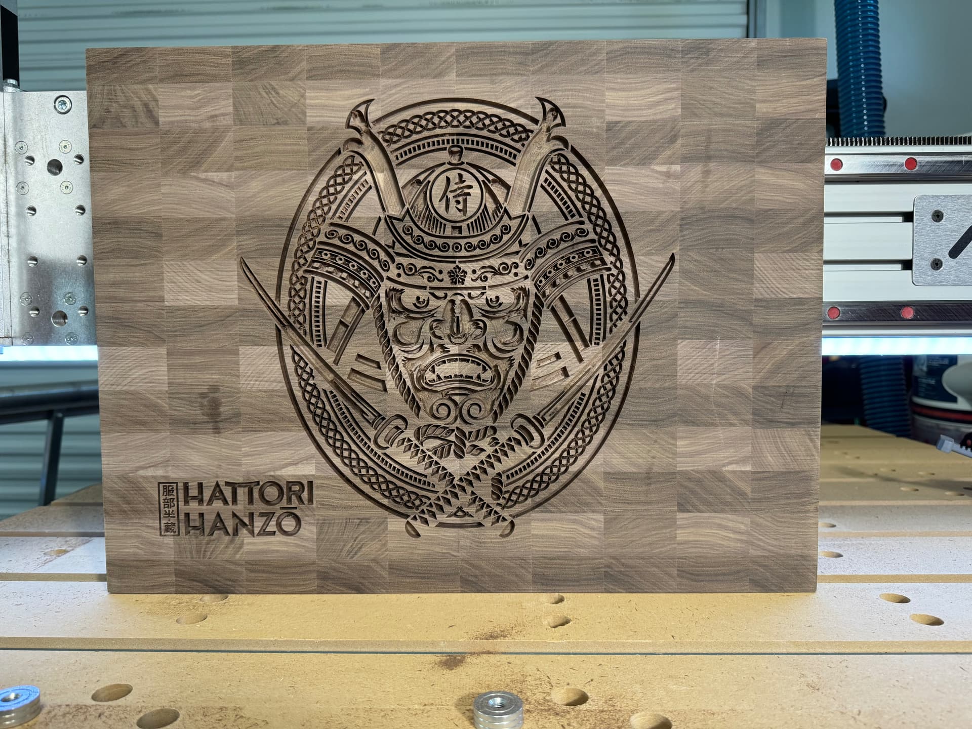 So, several months back I started working on it. This was done entirely on the 48x48 using VCarve and a 6.2mm ball nose bit along with other clearance bits. The first side came out so well I did a second design on the back. I only use this as a display piece and could never put a knife to it but it sure does get some great reactions when friends see it.