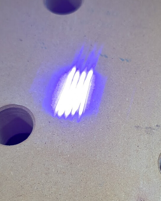 The one on the bottom left is the new laser, i tried turning the power down and it couldn’t burn through the finish and then the power too high made it blur really badly.